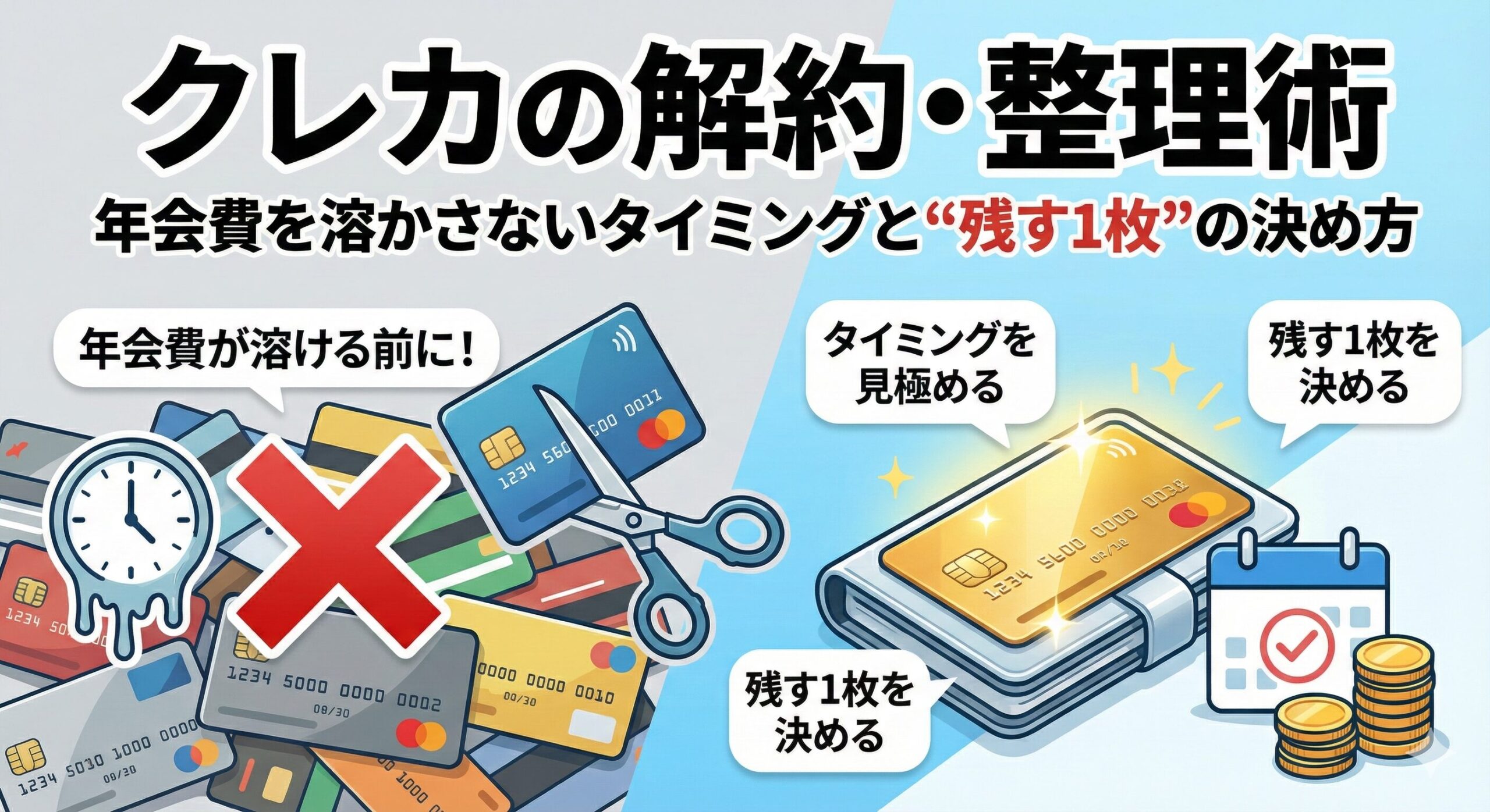- 解約は「年会費の発生日」「ポイント残高」「サブスク/公共料金の紐づけ」を確認してから