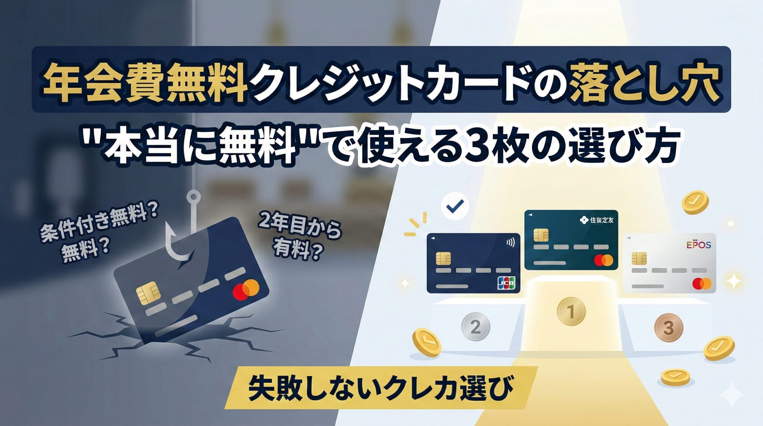 この記事では、年会費無料カードの「裏側」を整理した上で、本当に無料のまま使い続けられるカードを3枚に絞って紹介する。